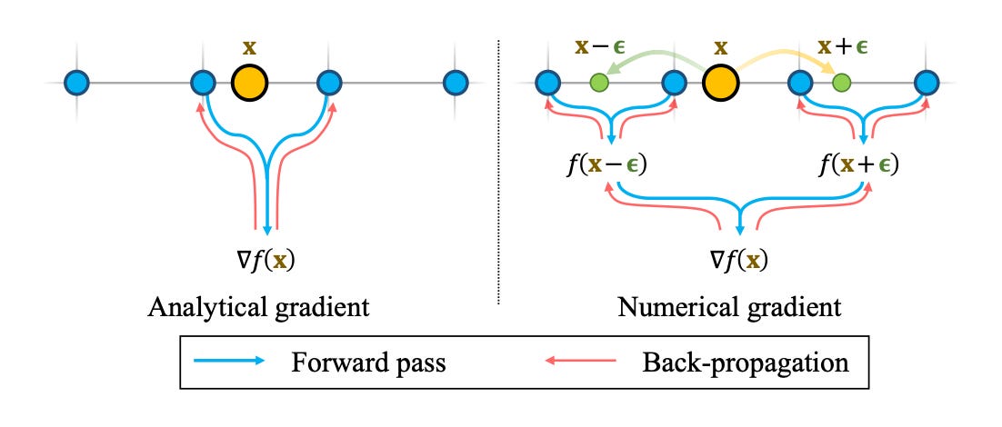 An alternative is to use Numerical Gradients, where we simply sample two points around x